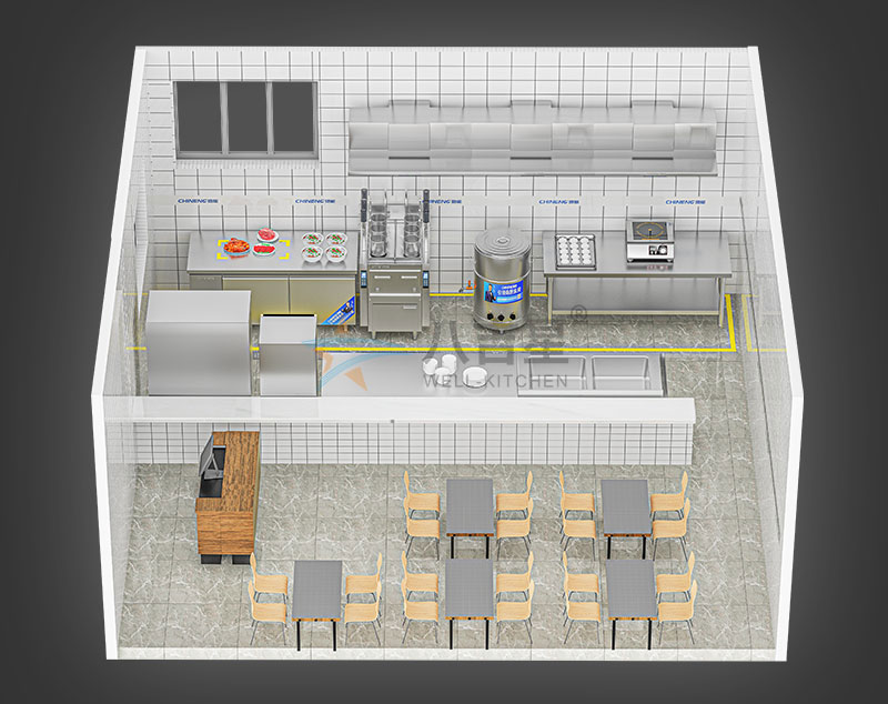 適用于快餐店、面館、麻辣燙店、火鍋店等特色餐飲廚房,由專業廚房工程設計師根據菜品,現場情況進行廚房設計,成本低廉方便易用,運營效率高,整合廚房設備配套,油煙抽排系統,各個功能間合理協調運作。